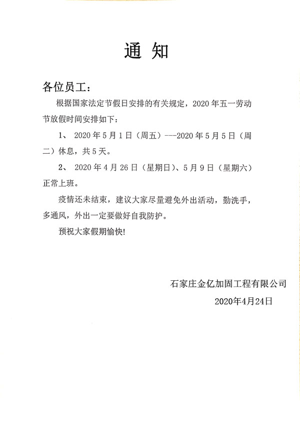 金億加固公司51勞動節(jié)放假通知