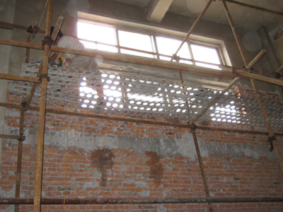 加固改造內容:柱子加大截面、新加梁、鋼筋網抹灰